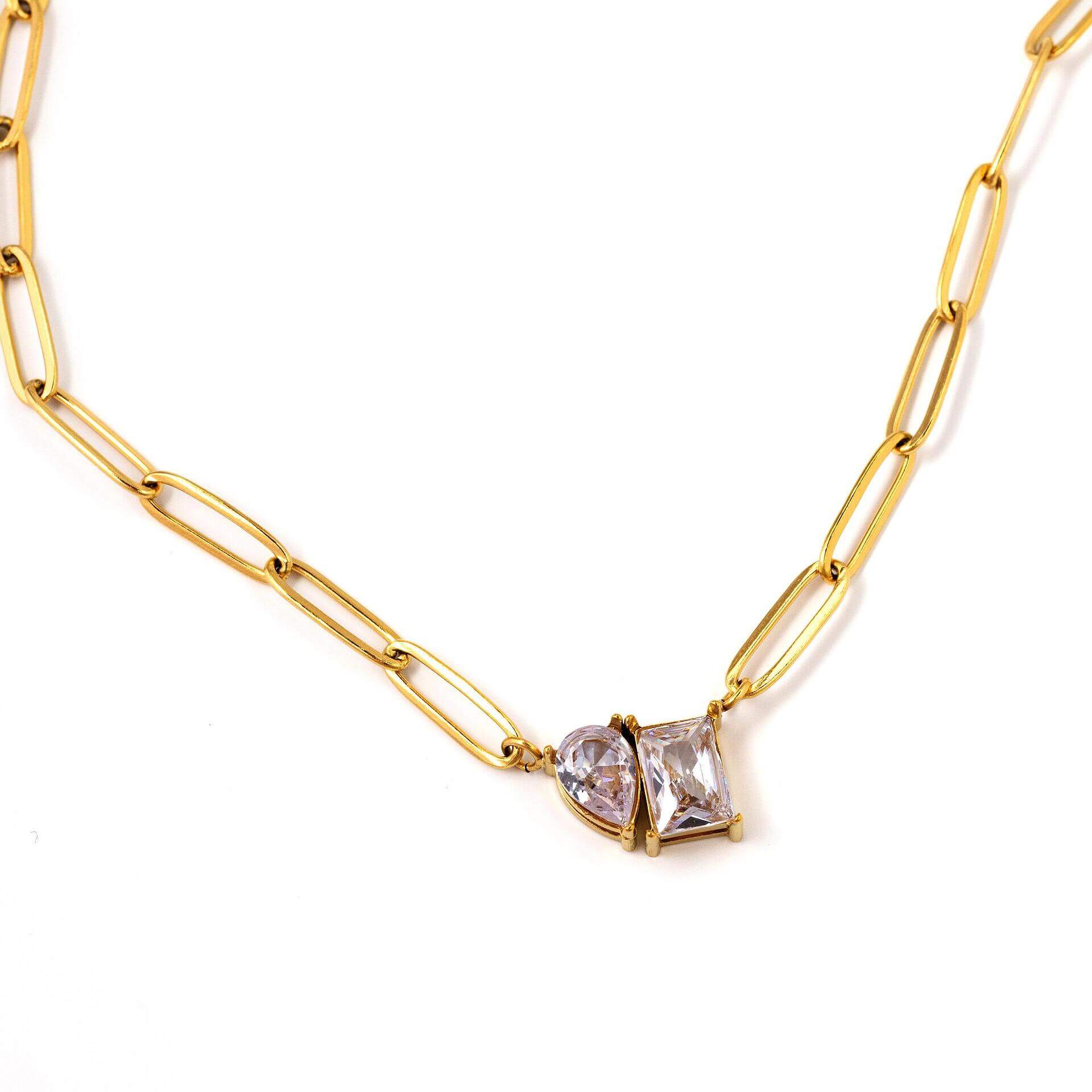Златисто колие с два кристала и голяма верига, изработено от медицинска стомана с хипоалергенно покритие.