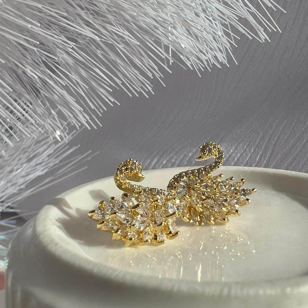 Обеци Лебед с Ослепителен Блясък Gold Swan