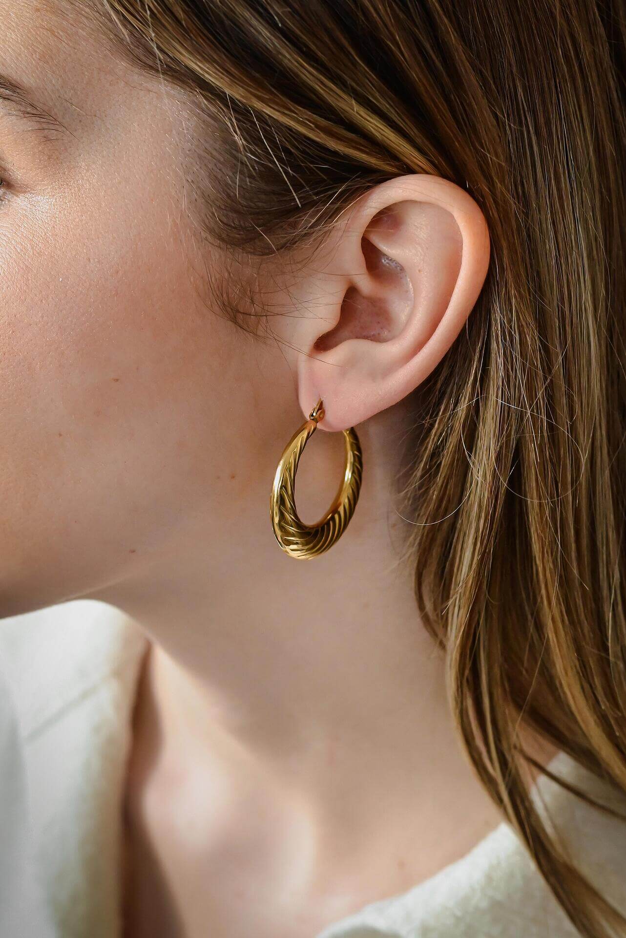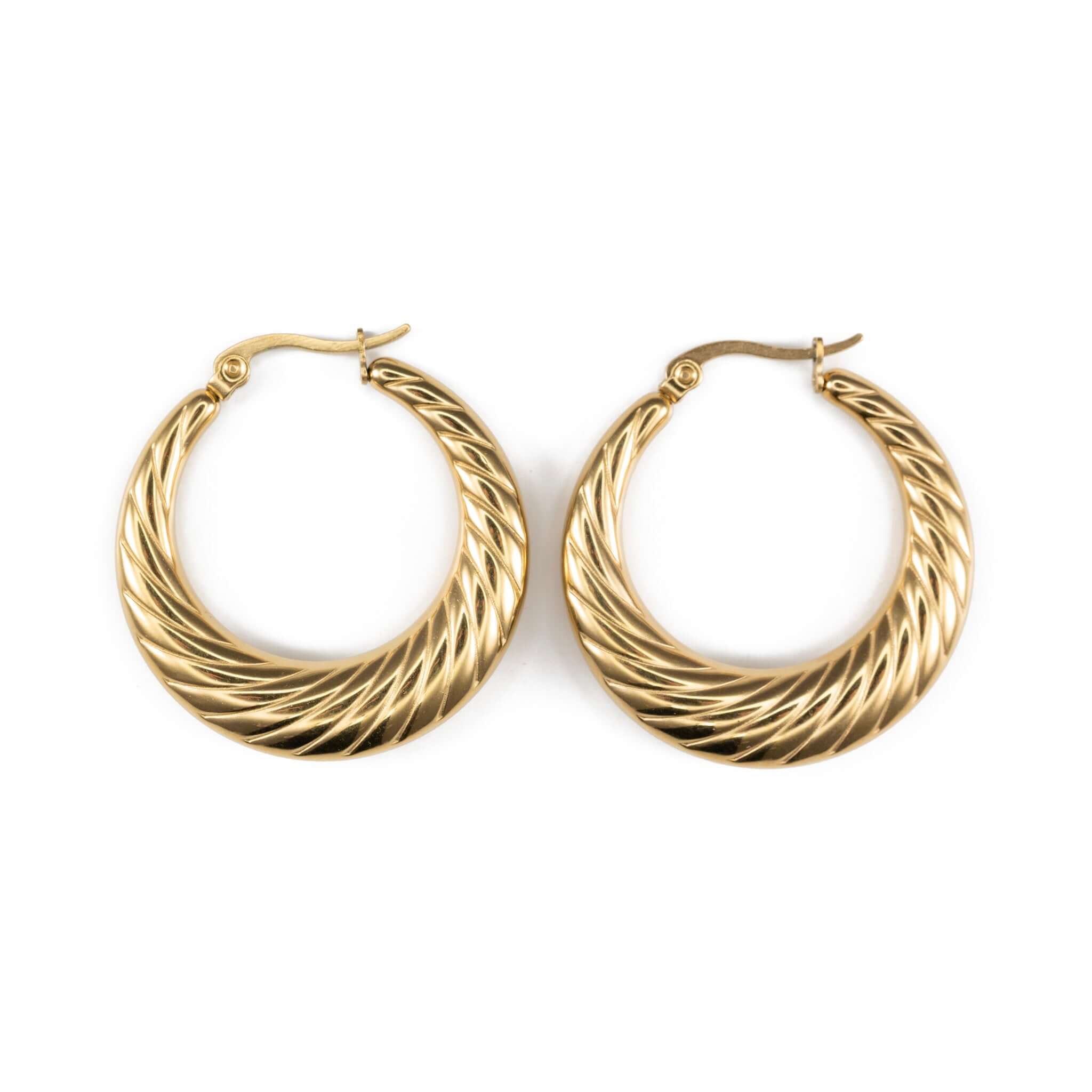 Тези златисти обеци Кроасан 2024 могат да бъдат незаменимото допълнение към вашия гардероб. Дизайнът им предава усещане на  изтънченост и ги прави забележителни. Идеални са за eжедневно носене или за специален повод.