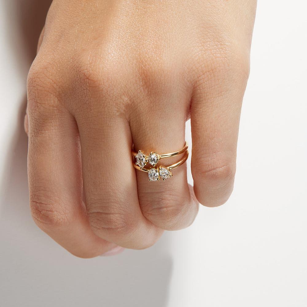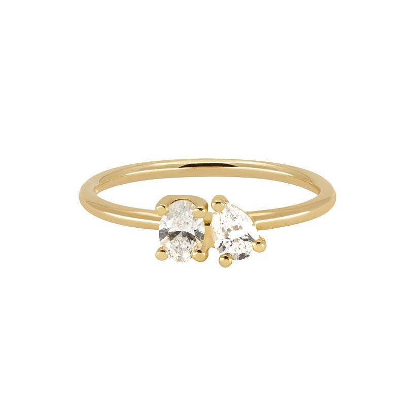 Сребърен пръстен Passion с цирконий и 18К златно покритие, двоен диамант, размер 7.