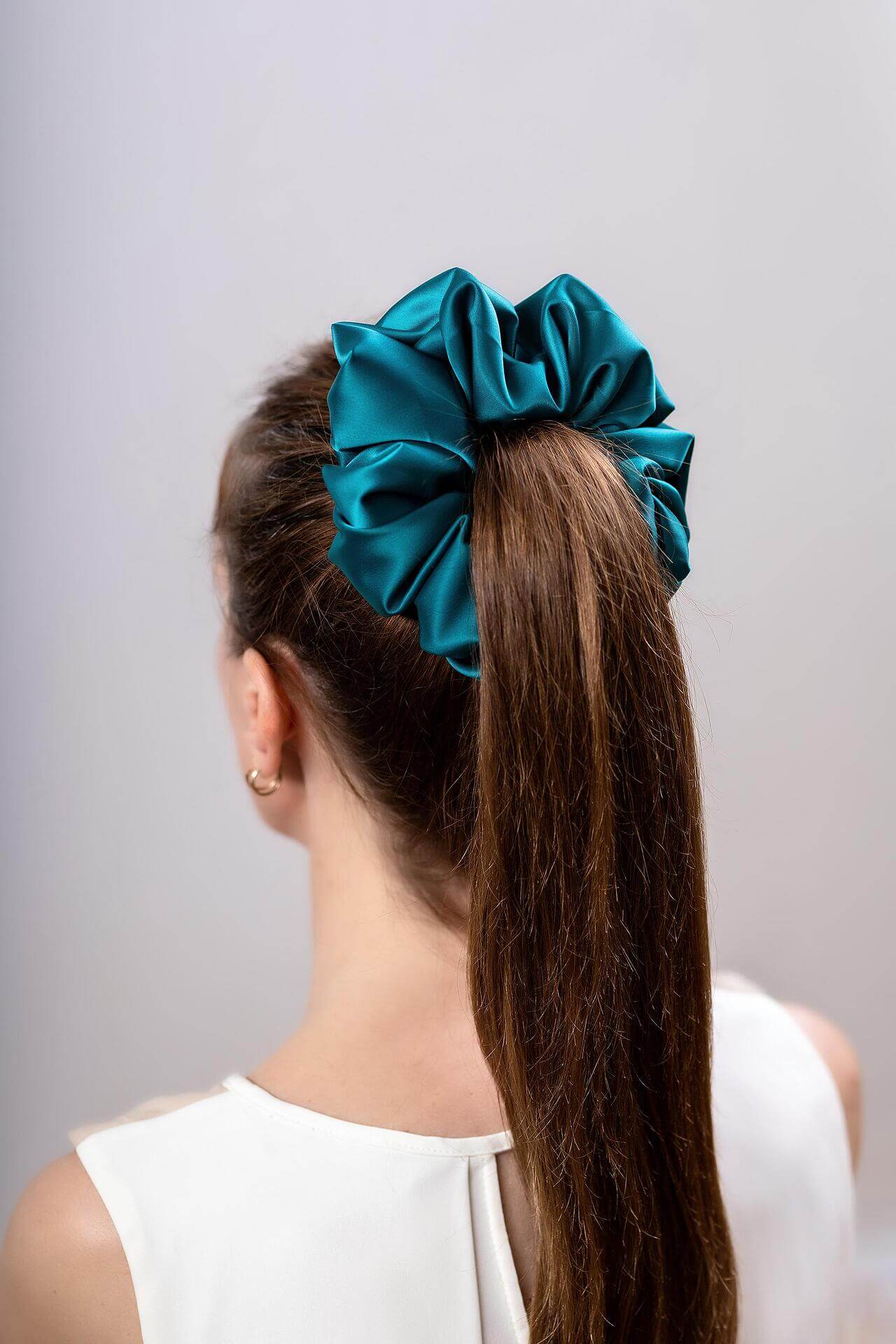 • Нашето класическо скрънчи "Емили", което е ушито изцяло от нас е повече от идеално за носене на китката, на опашка или просто като аксесоар.