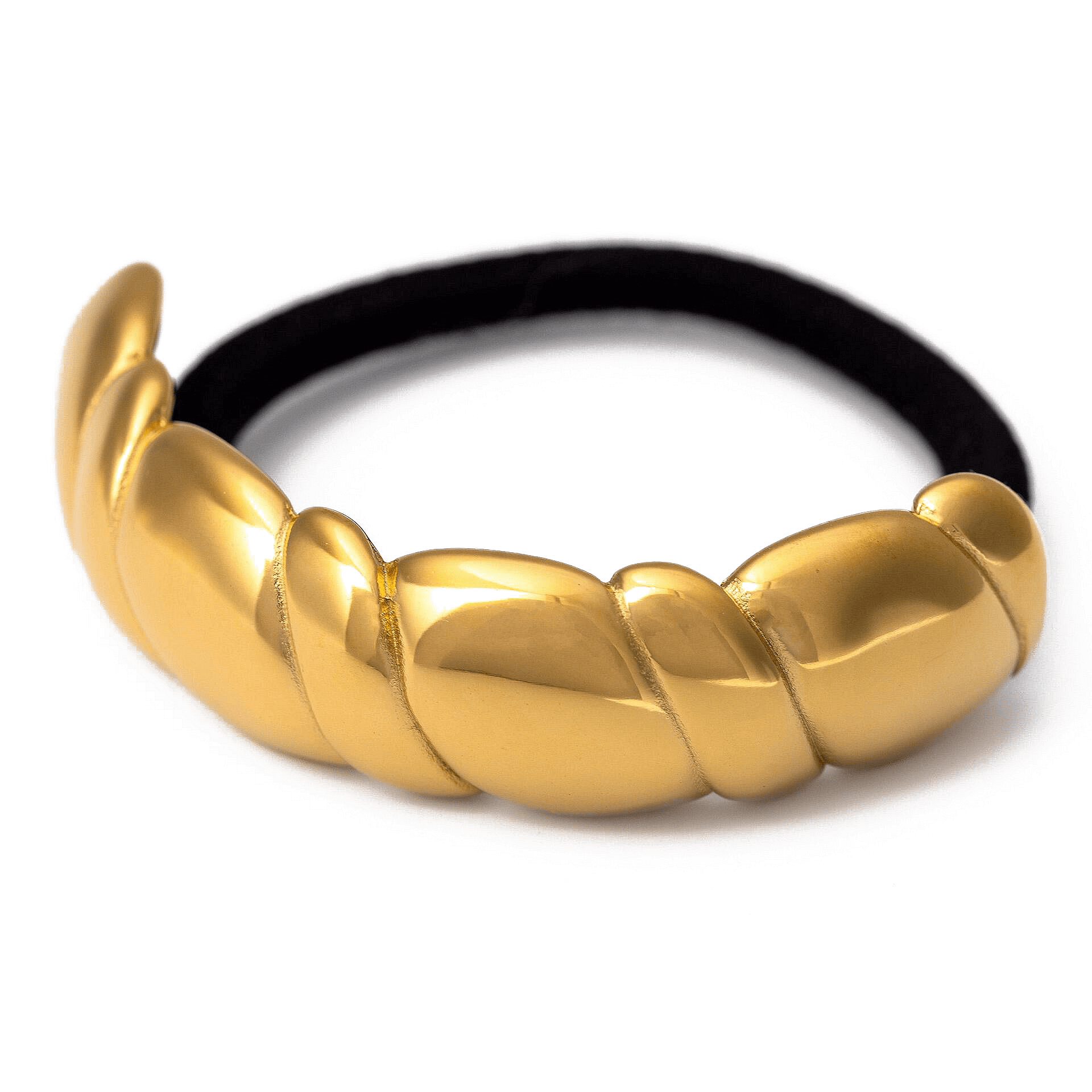 Ластик за коса 'Кроасан' в златен цвят, стилен и елегантен аксесоар за прическа.