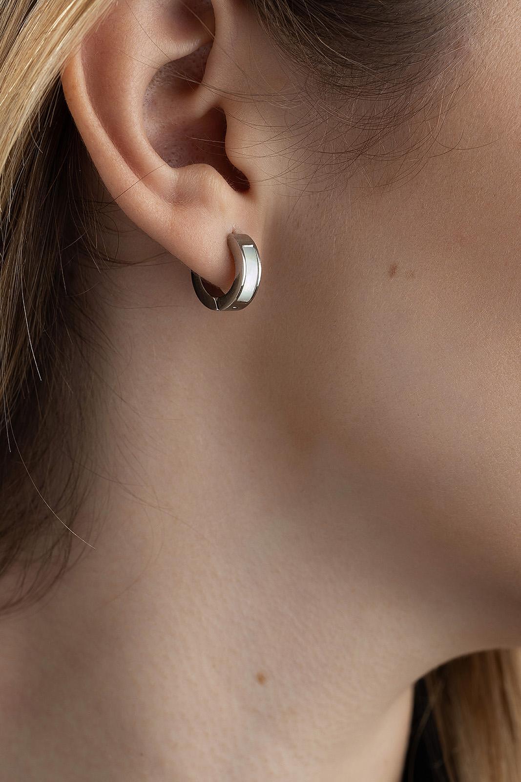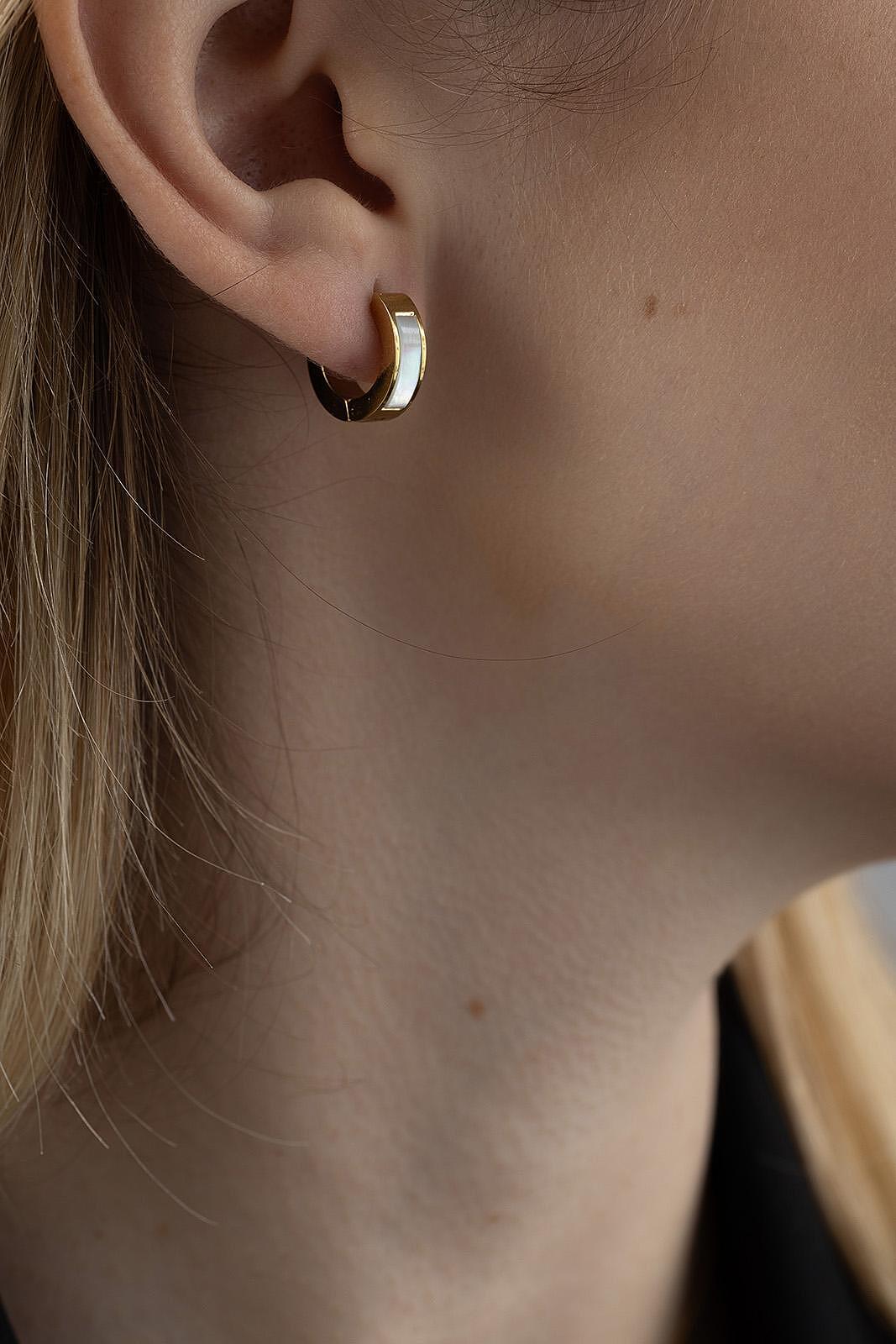 Минималистични обеци със седеф на ухо, изработени от медицинска стомана в елегантен стил.