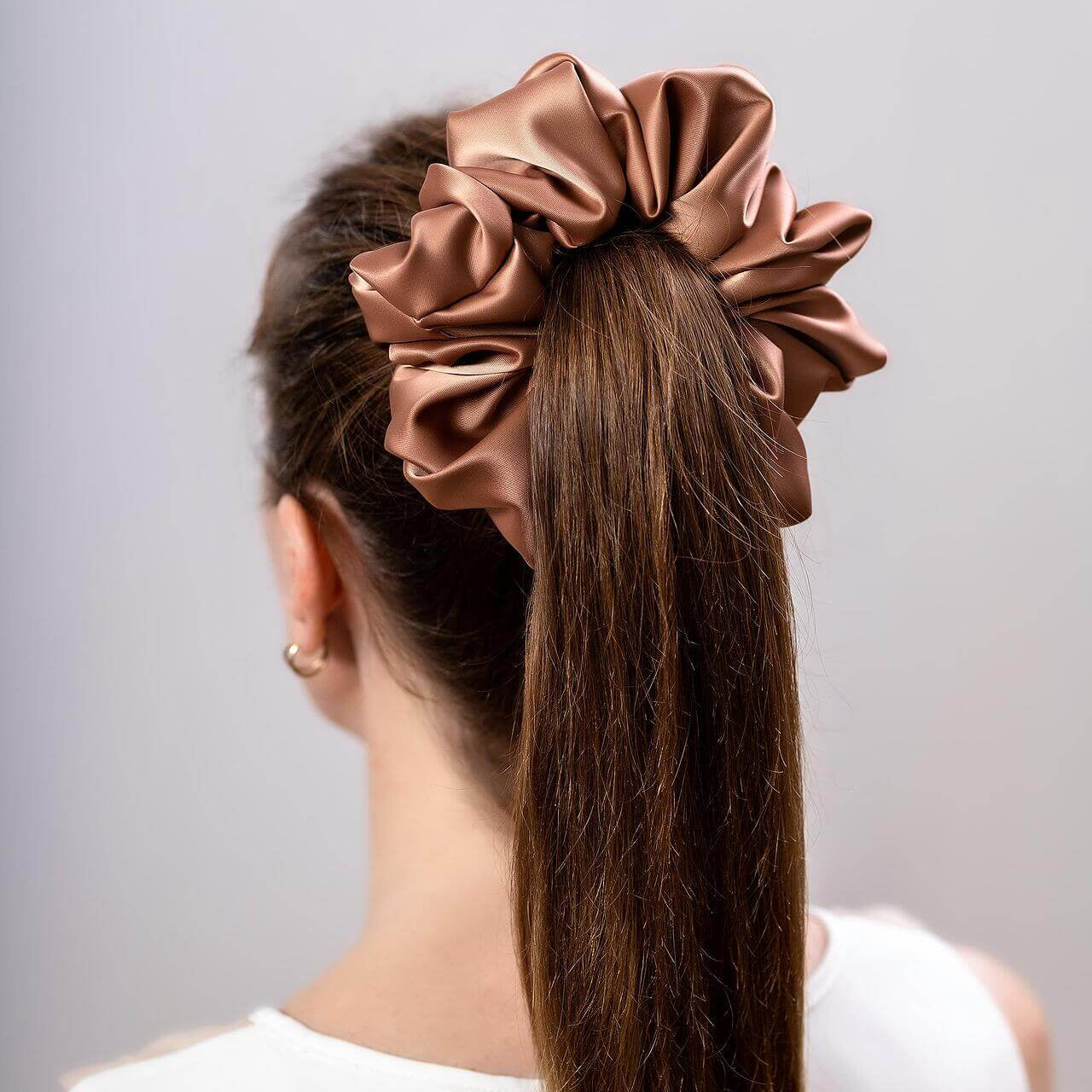 Μεγάλο σατέν scrunchie – Ανοιχτό καφέ