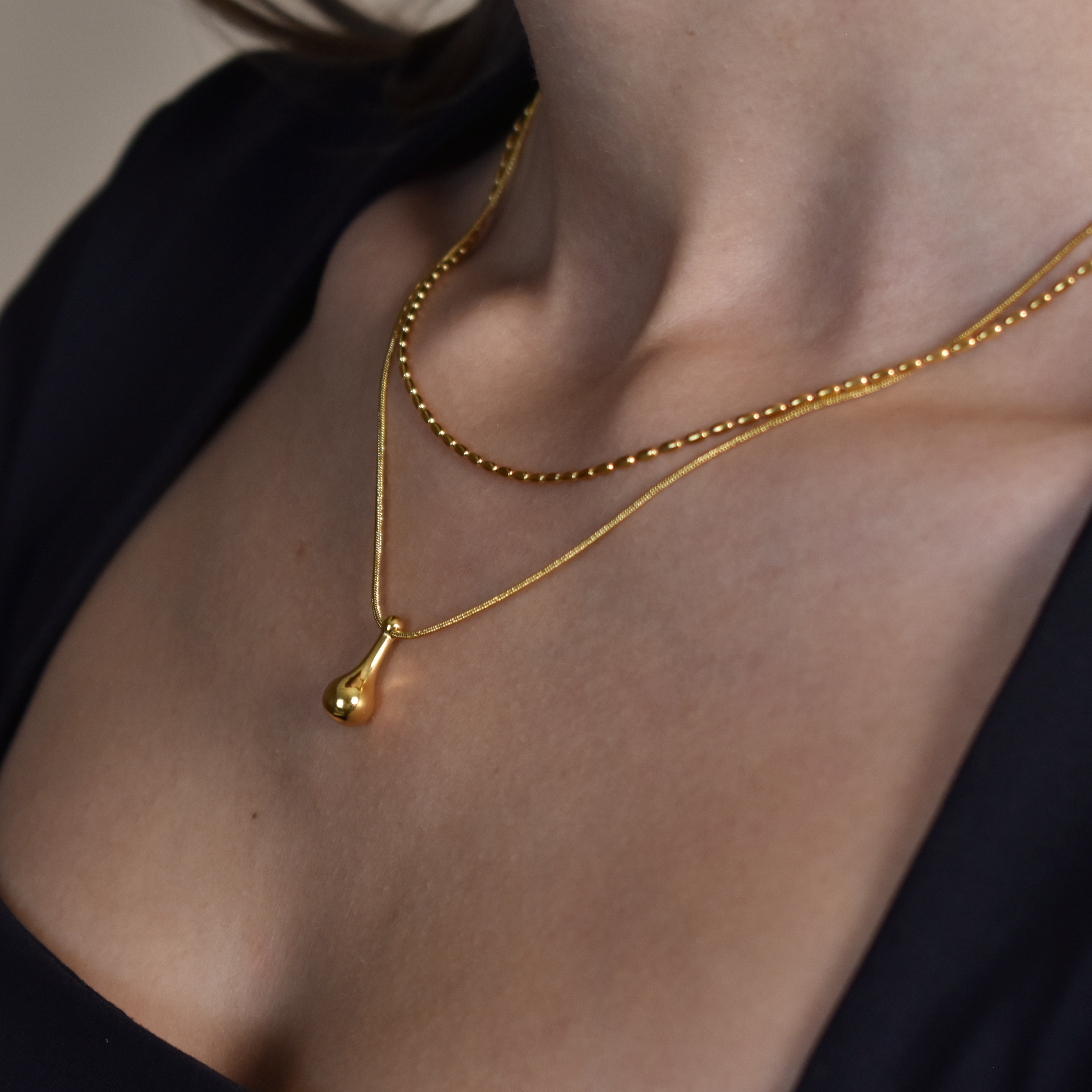 Διπλό Κολιέ Σταγόνα με 18Κ Χρυσή Επίστρωση