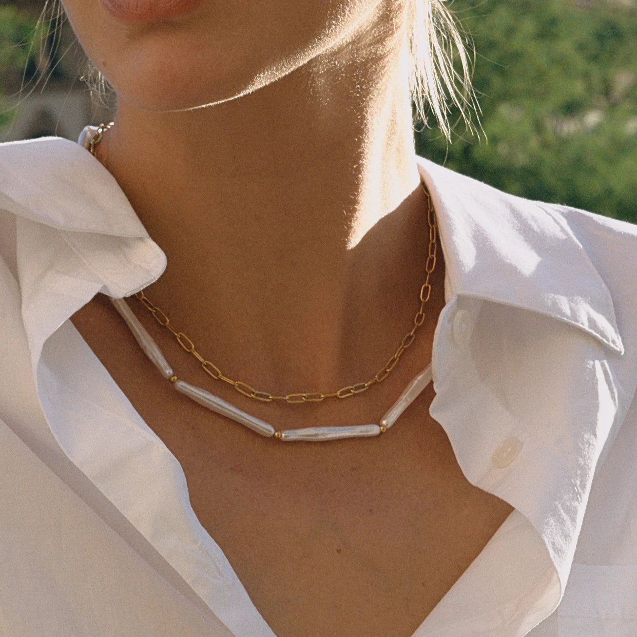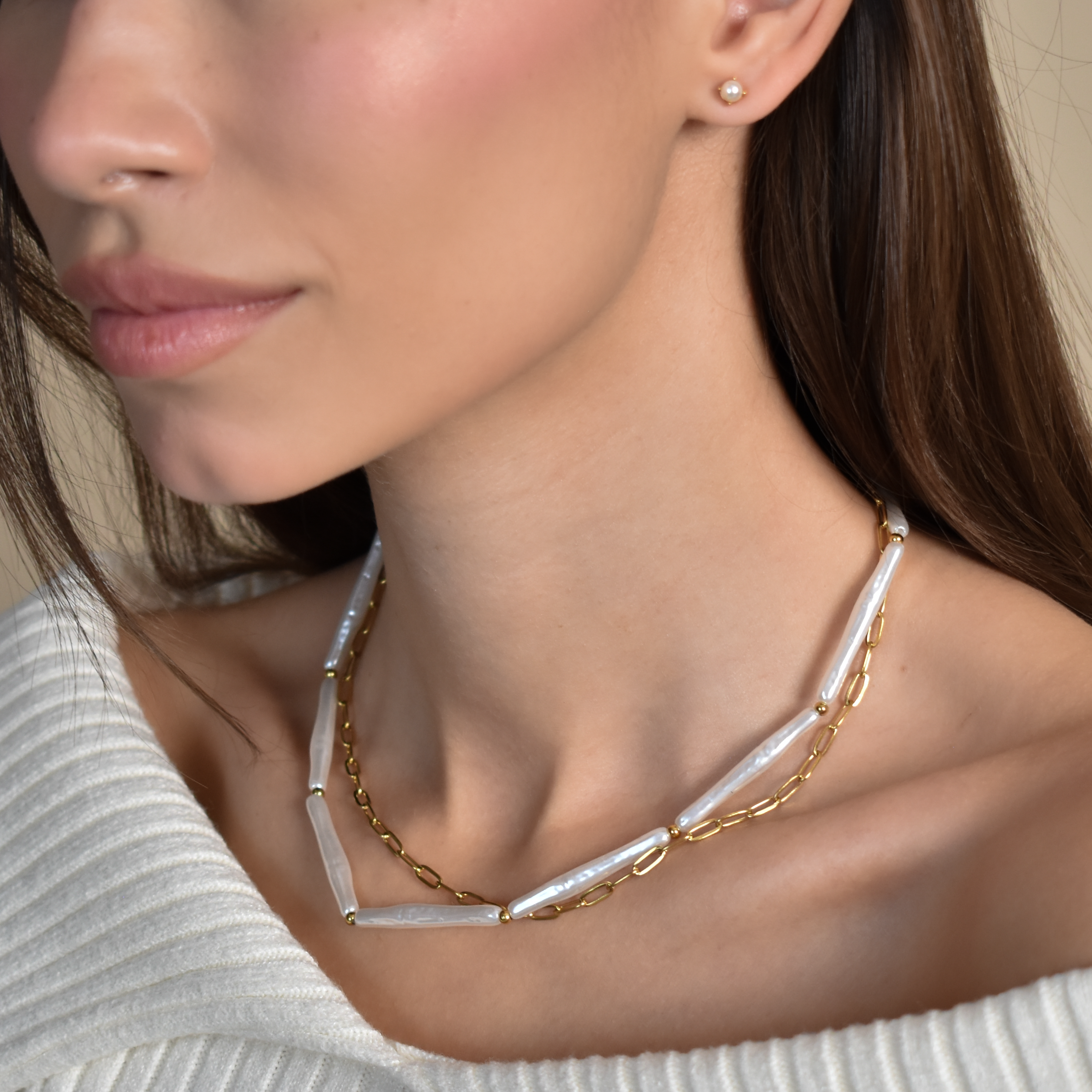 Διπλό Κολιέ Φυσική Πέρλα με 18Κ Χρυσή Επίστρωση