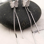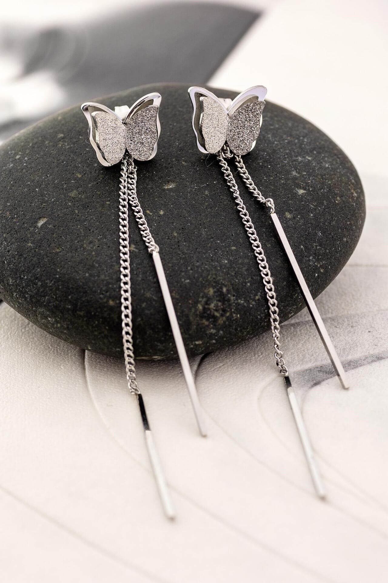 Ασημένια μακριά σκουλαρίκια πεταλούδες