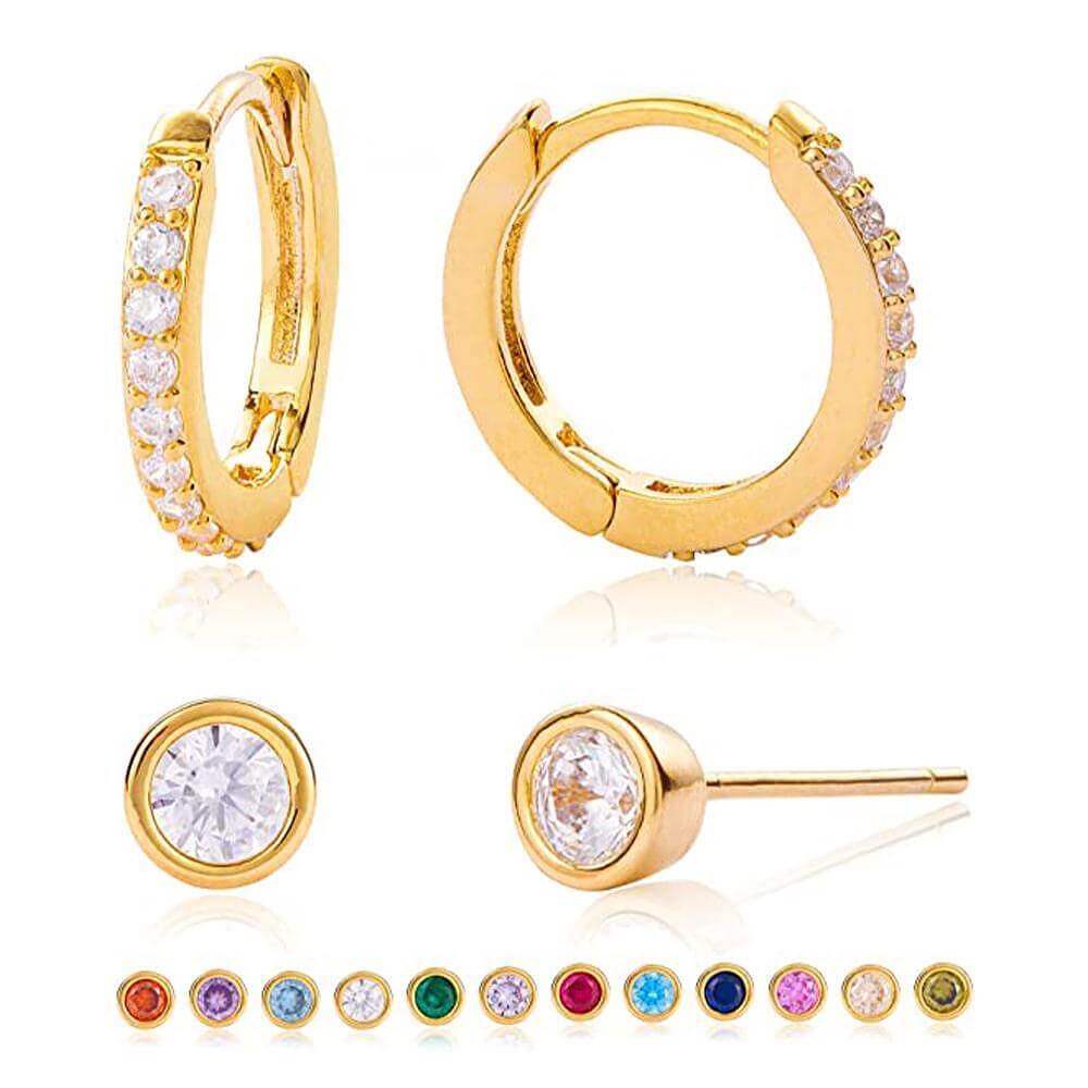 Σετ σκουλαρίκια 3 τμχ Gold Opal Hoops Silver S925 — 2 χρώματα 18K με επιχρύσωση