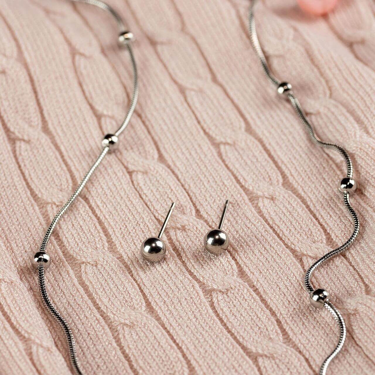 Σετ ασημί χάντρες – κολιέ + σκουλαρίκια