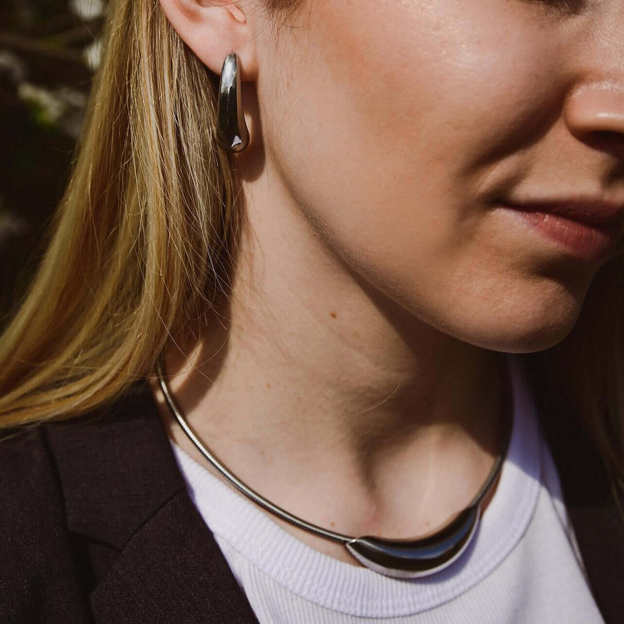 Ασημί σετ Chunky — Σκουλαρίκια + Κολιέ