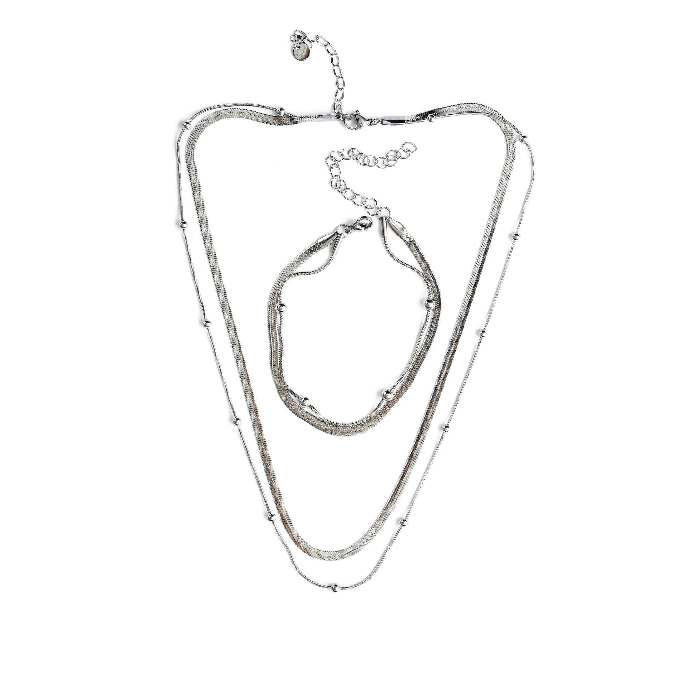 Σετ κολιέ σε πλέξη φιδιού & εύκαμπτο βραχιόλι (ασημί χρώμα)