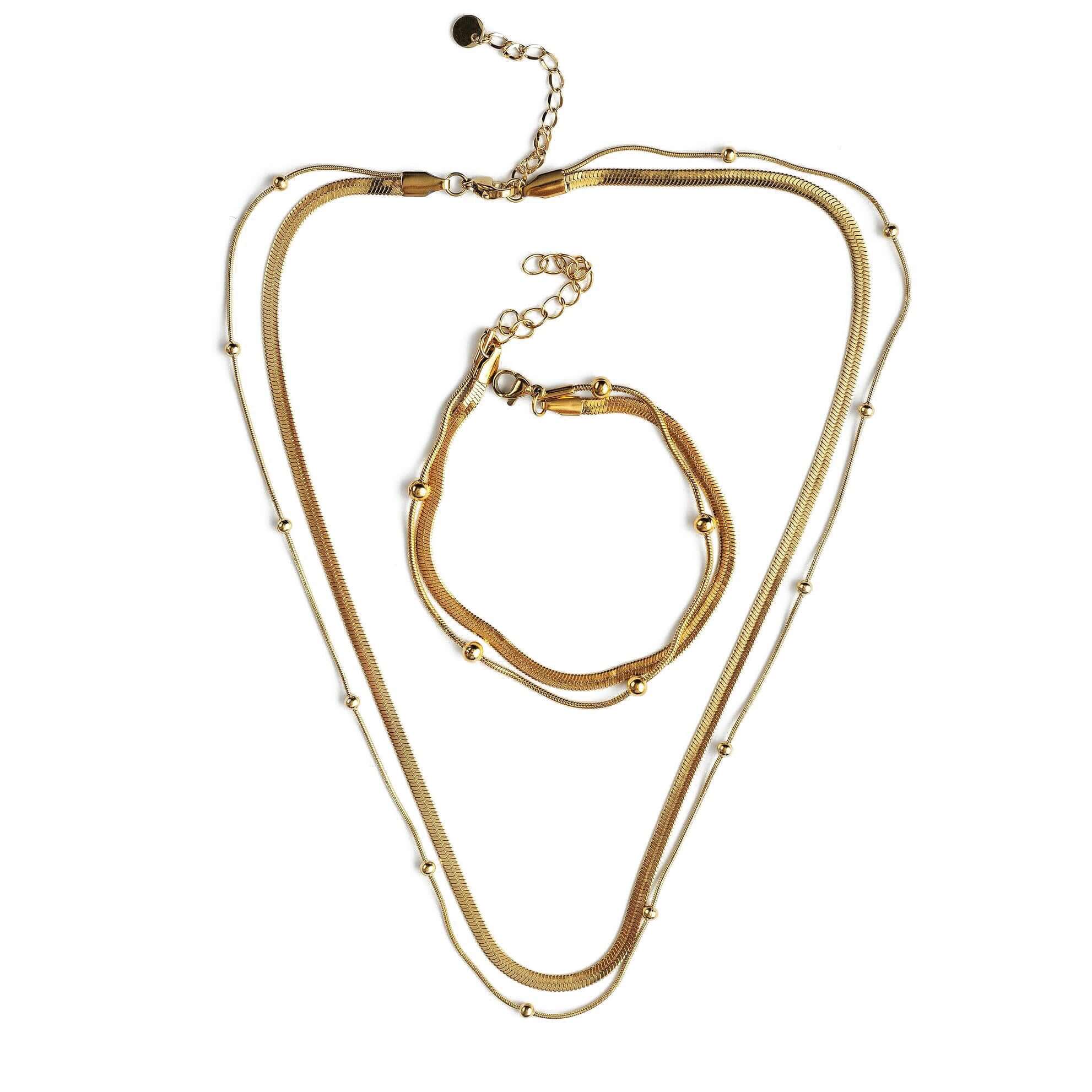 Χρυσό σετ μαλακό βραχιόλι & κολιέ – Πλέξη φιδιού