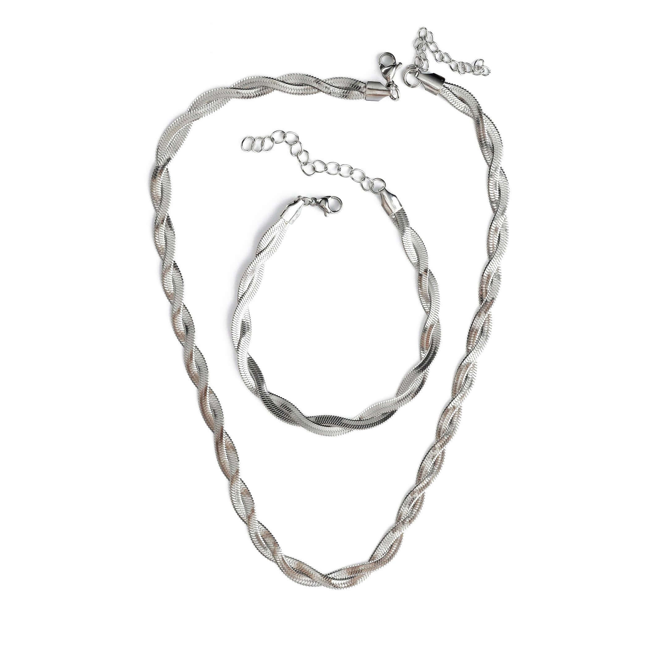 Σετ κολιέ σε πλέξη φιδιού & εύκαμπτο βραχιόλι (ασημί χρώμα)