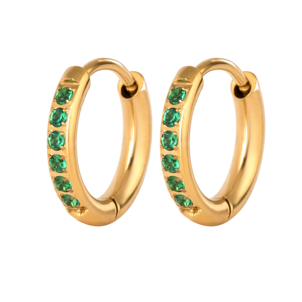Сет обеци Everyday с 18К златно покритие, включващи 6 бр. с медицинска стомана и зелени камъни.