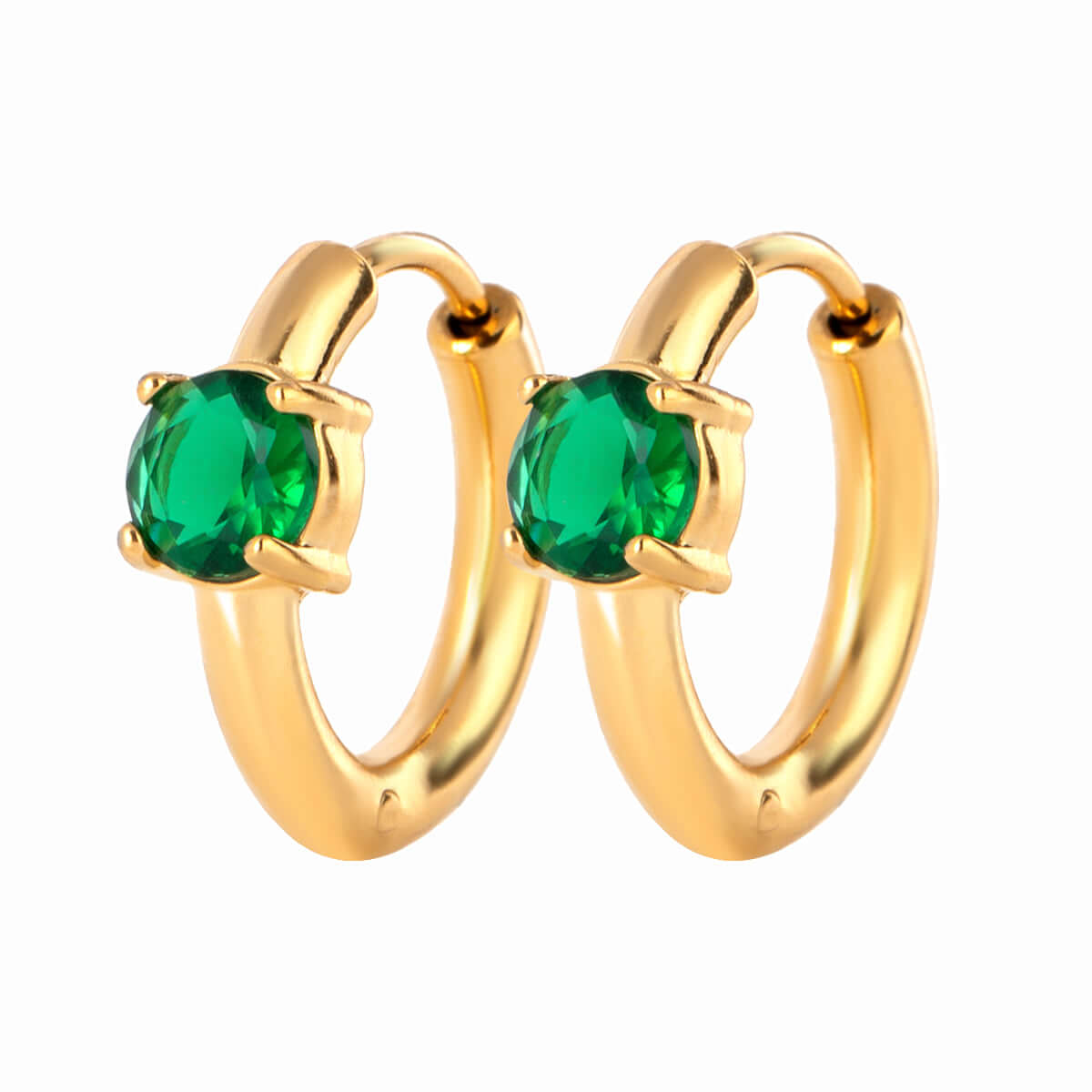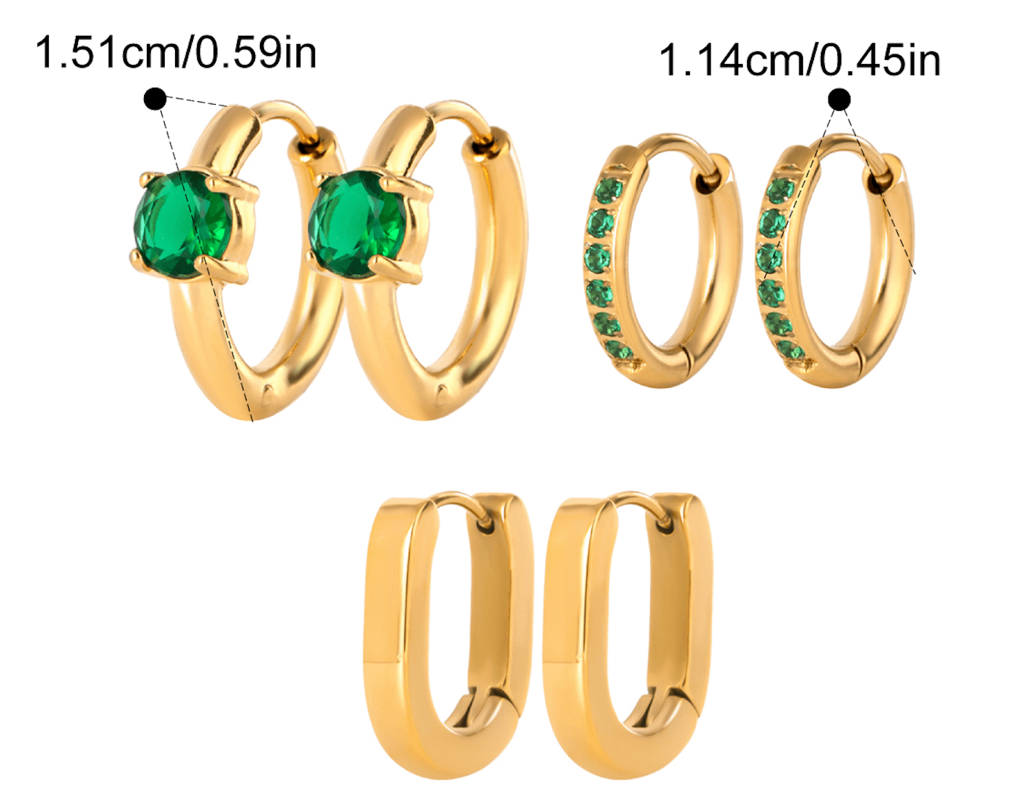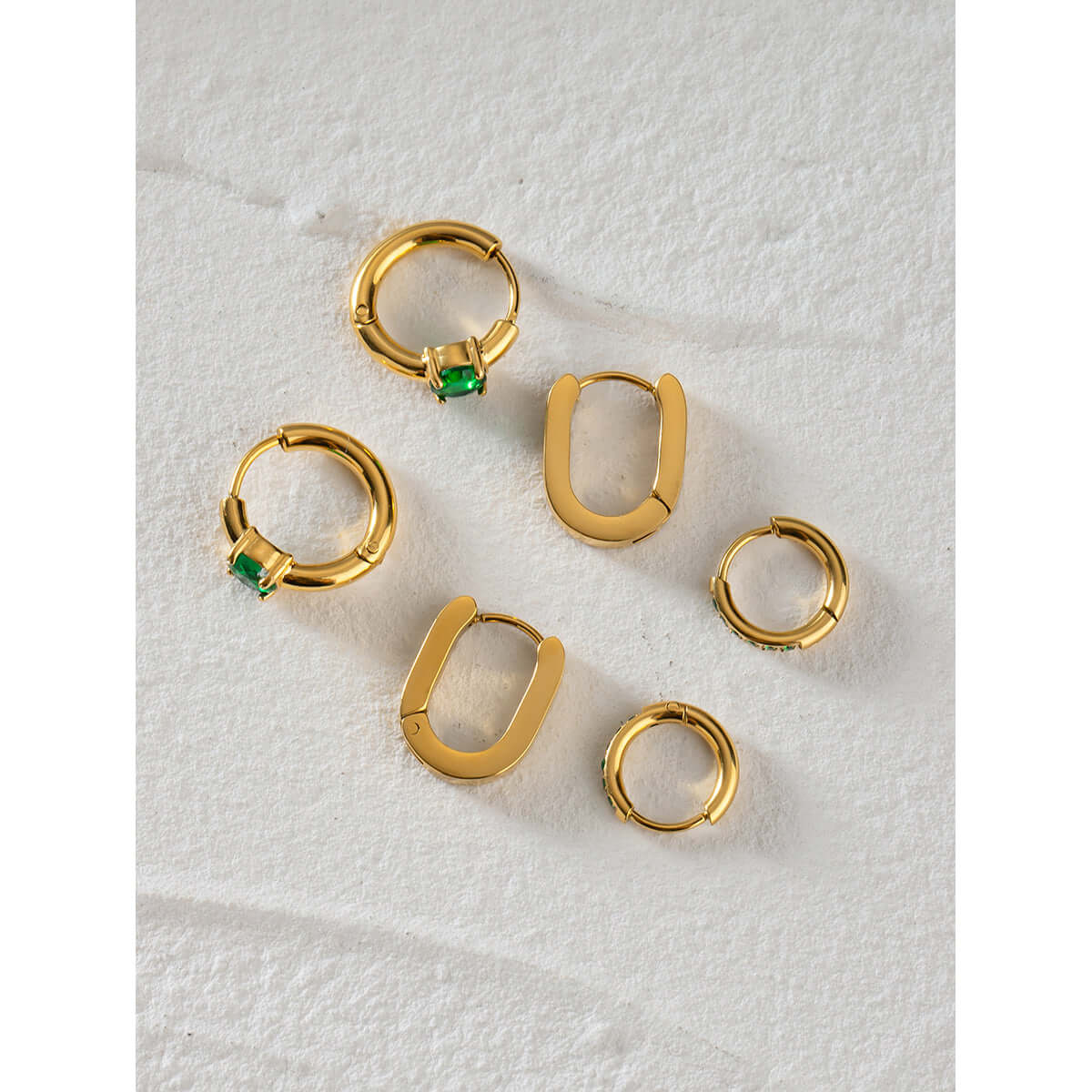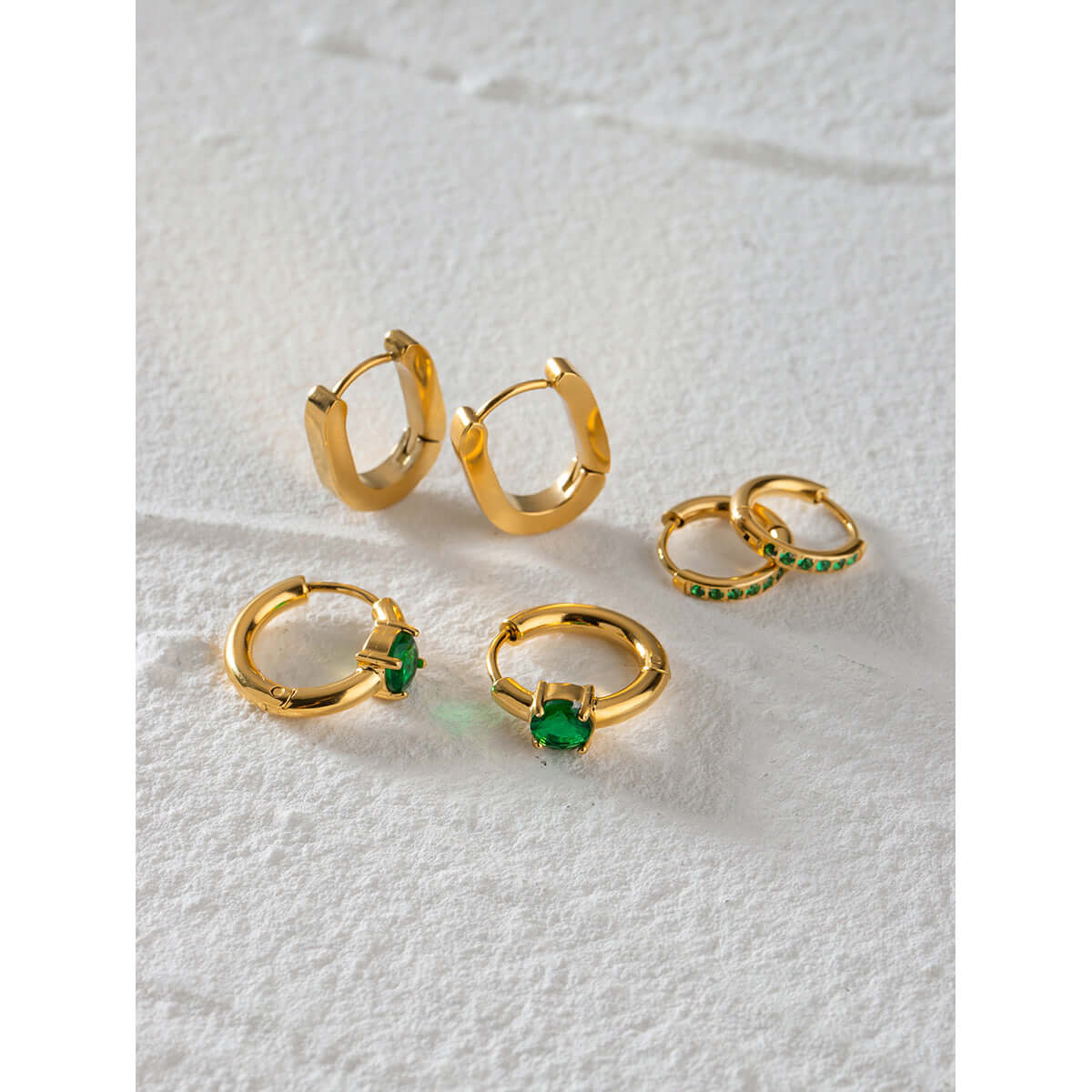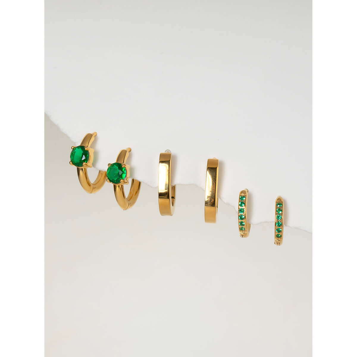 Сет обеци Everyday с 18К златно покритие, различни размери и зелен камък, идеални за всекидневно носене.
