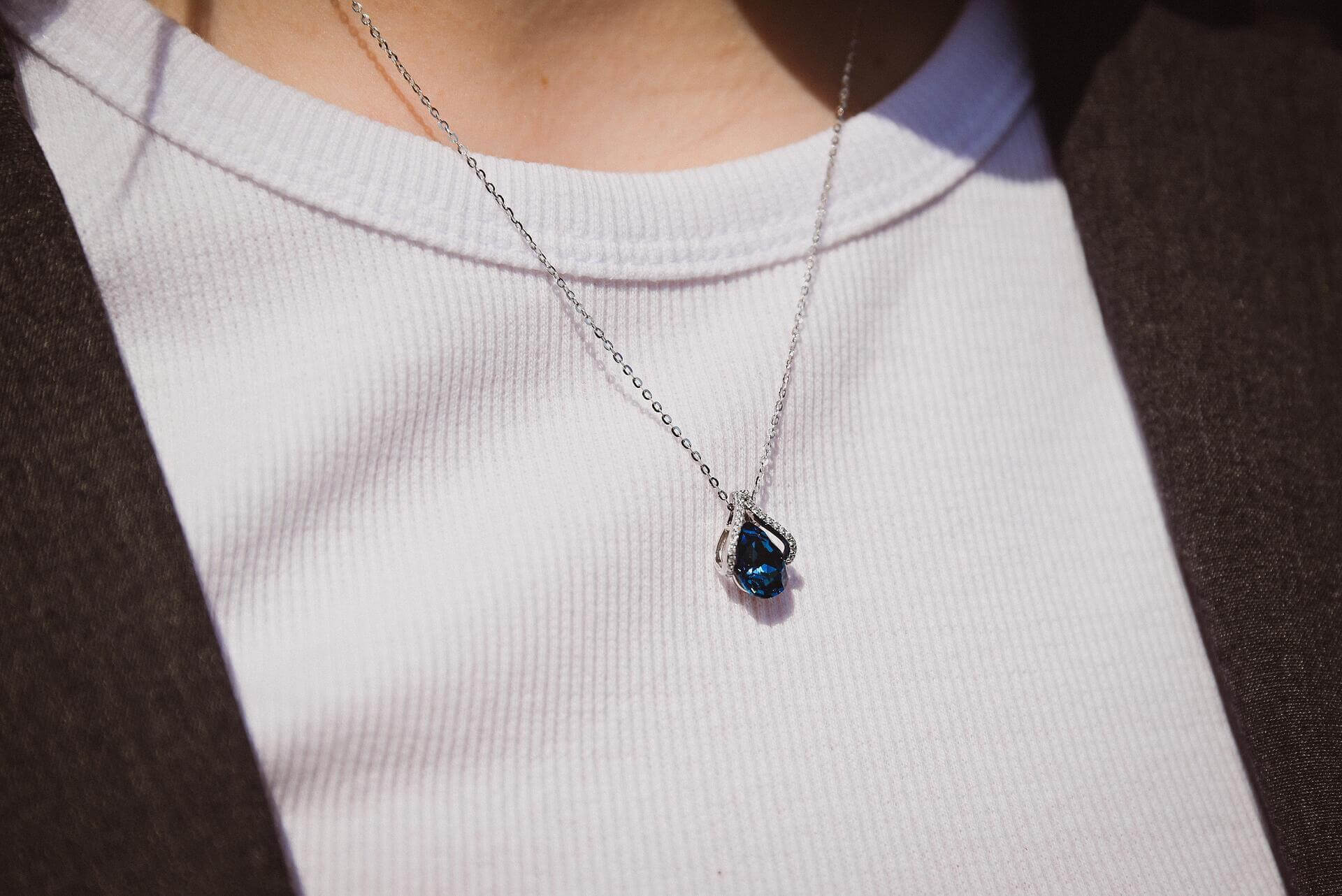 Ασημένιο Κολιέ Μπλε Κρύσταλλος S925