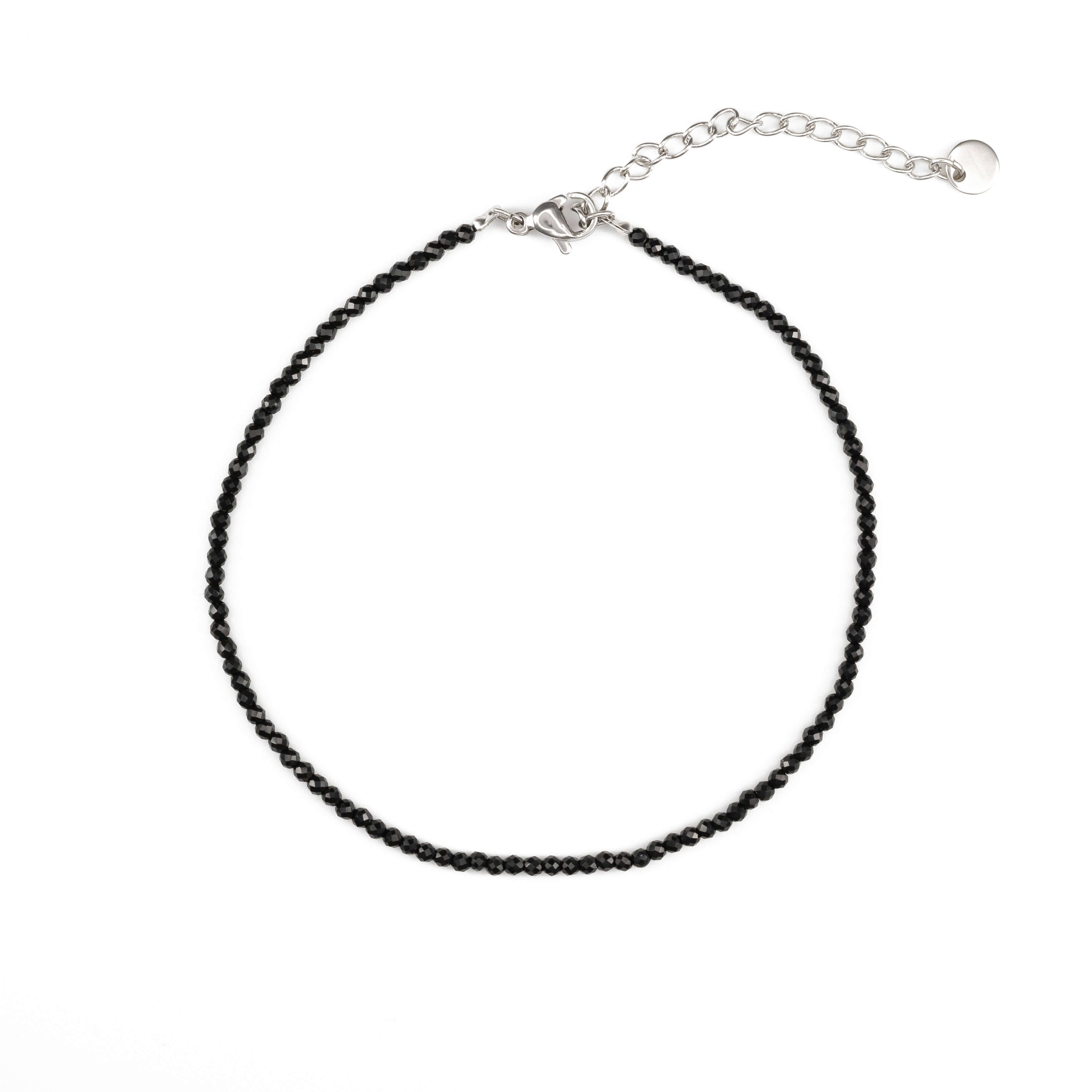 Гривна за глезен с черни мъниста и сребриста закопчалка, универсален аксесоар за стил и настроение.