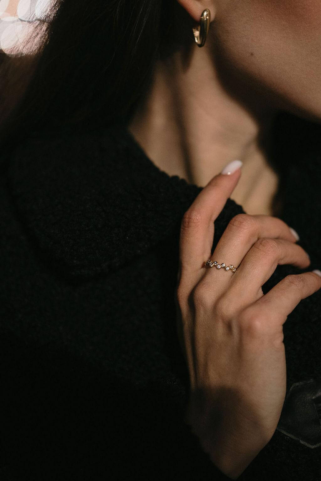 "Εκλεπτυσμένο δαχτυλίδι από ασήμι με επιχρύσωση 18K, που συνδυάζει σύγχρονη κομψότητα και διαχρονική λάμψη. Στολισμένο με ζιρκόνια ποιότητας 5A, κατεργασμένα για να ακτινοβολούν σε κάθε φως.