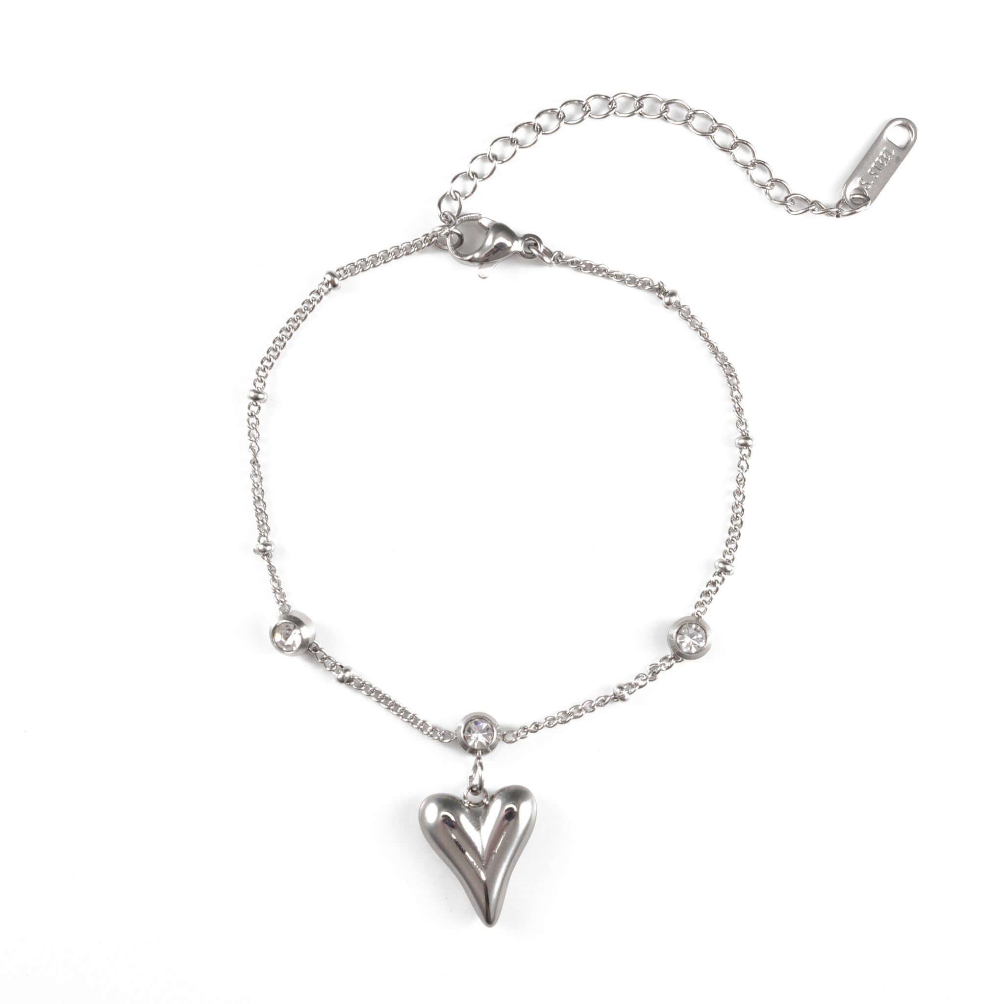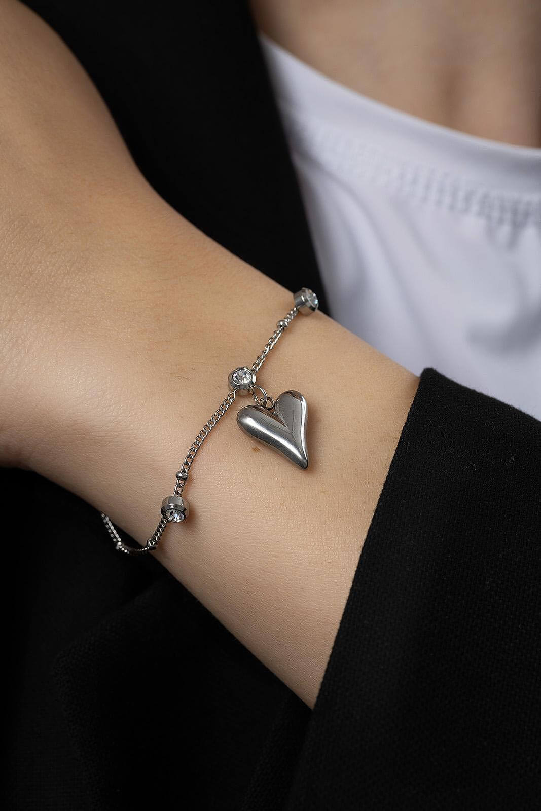 Мека зластиста гривна с висулка сърце от медицинска стомана, идеален аксесоар за романтичен вид.