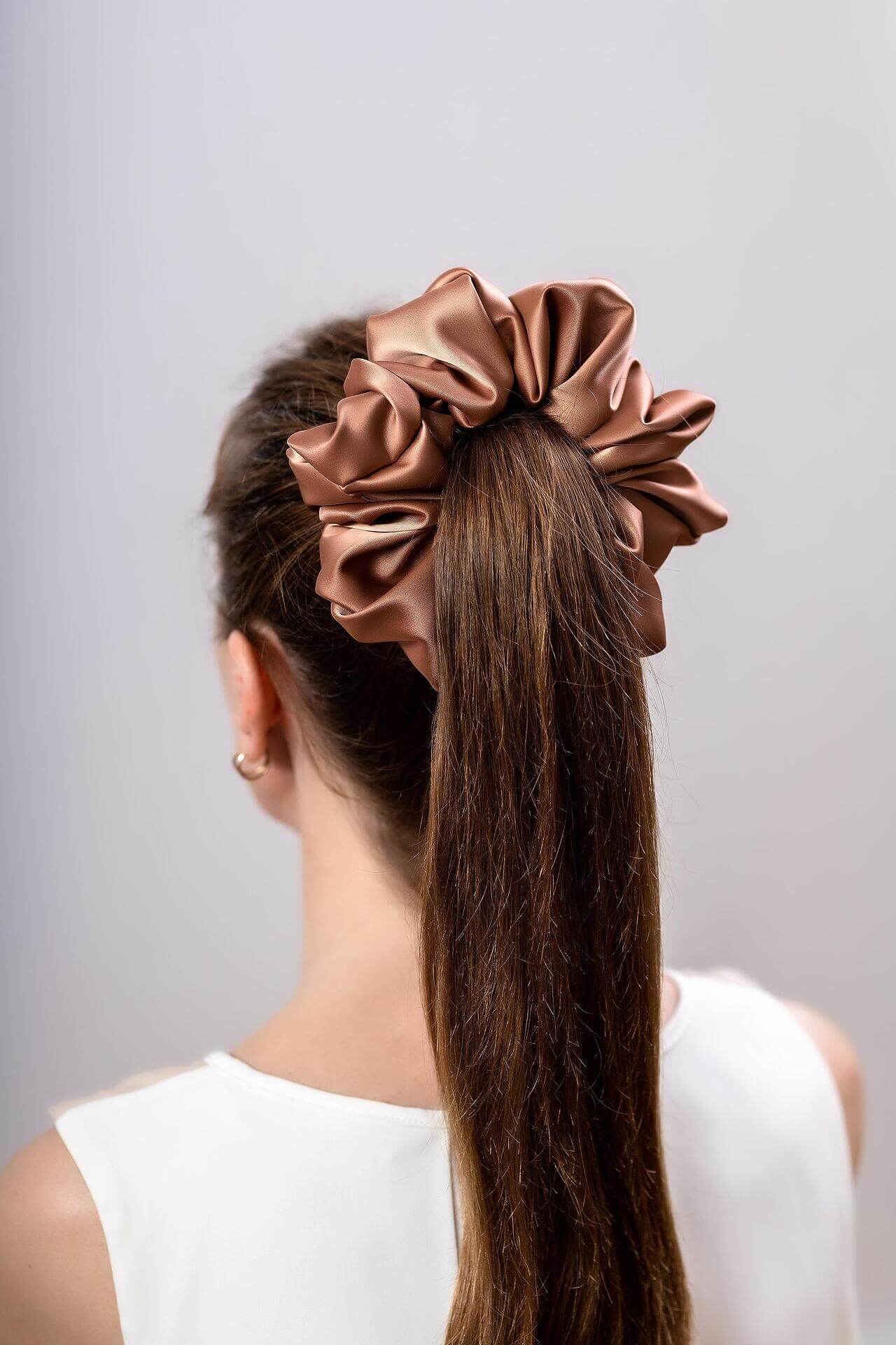 Μεγάλο σατέν scrunchie – Ανοιχτό καφέ