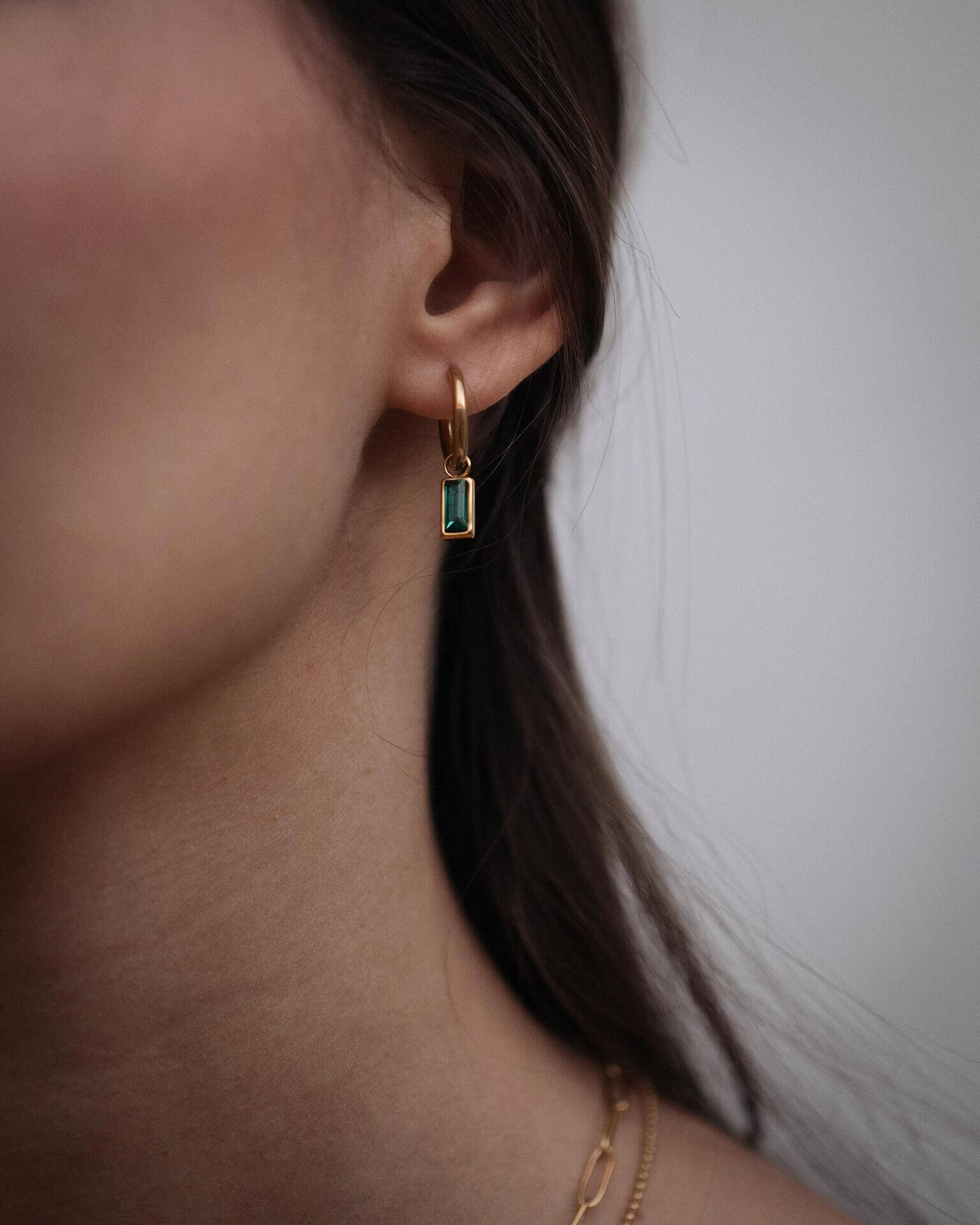 Χρυσά σκουλαρίκια Green Emerald 14K με επιχρύσωση