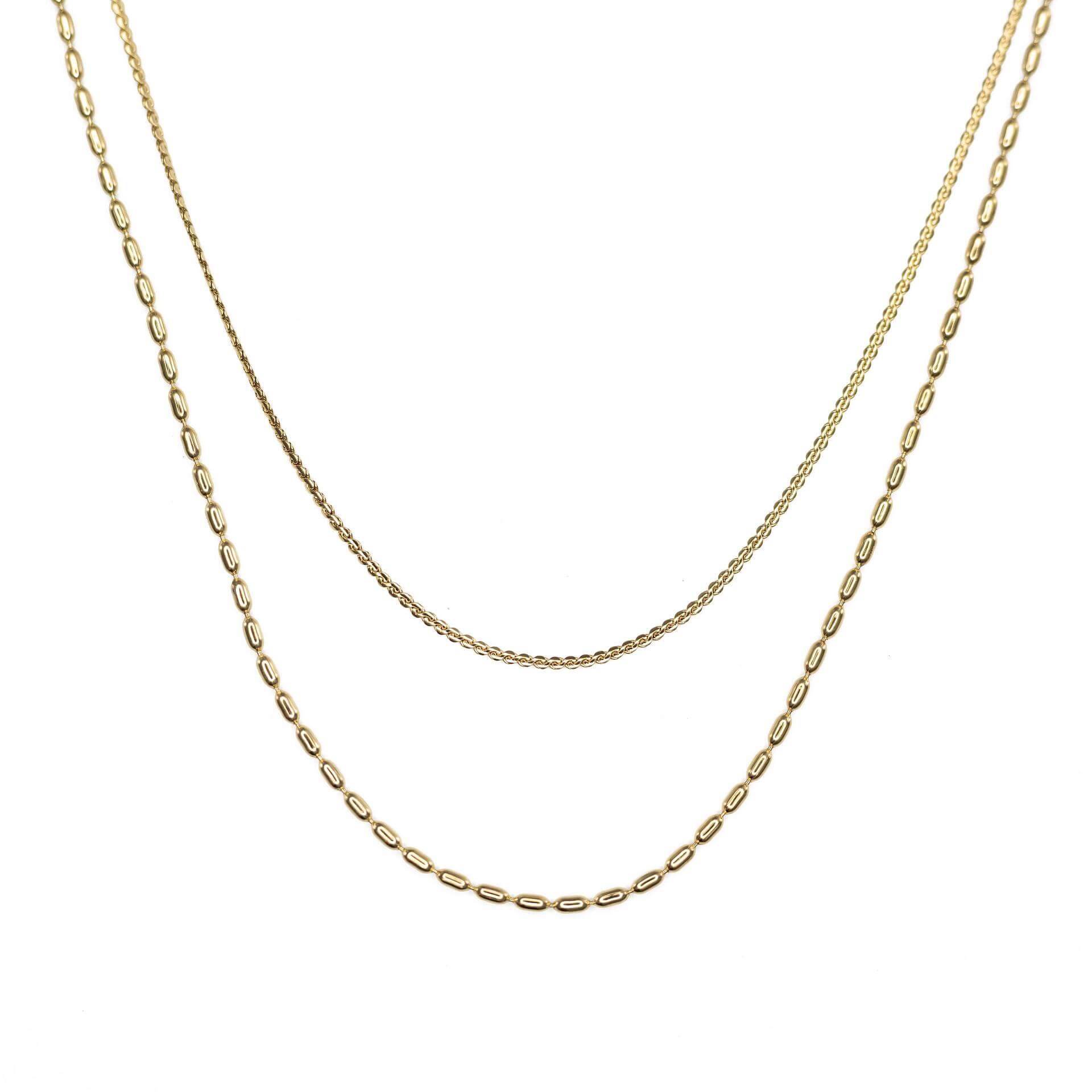 Златно двойно колие Elara от медицинска стомана 304L с 18К позлата, водоустойчиво и хипоалергенно.