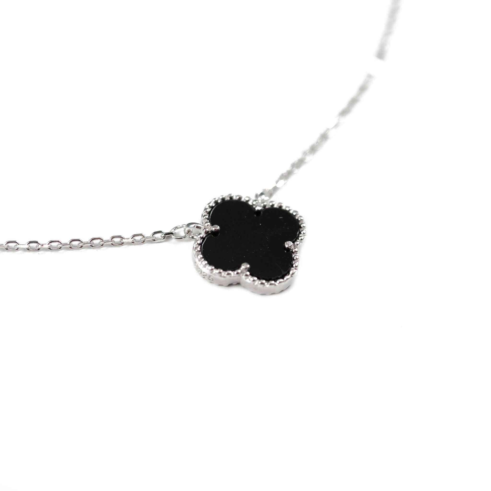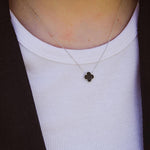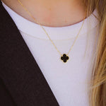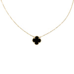 Χρυσό Ασημένιο Κολιέ Τριφύλλι με Μαύρο Μητέρα του Μαργαριταριού S925