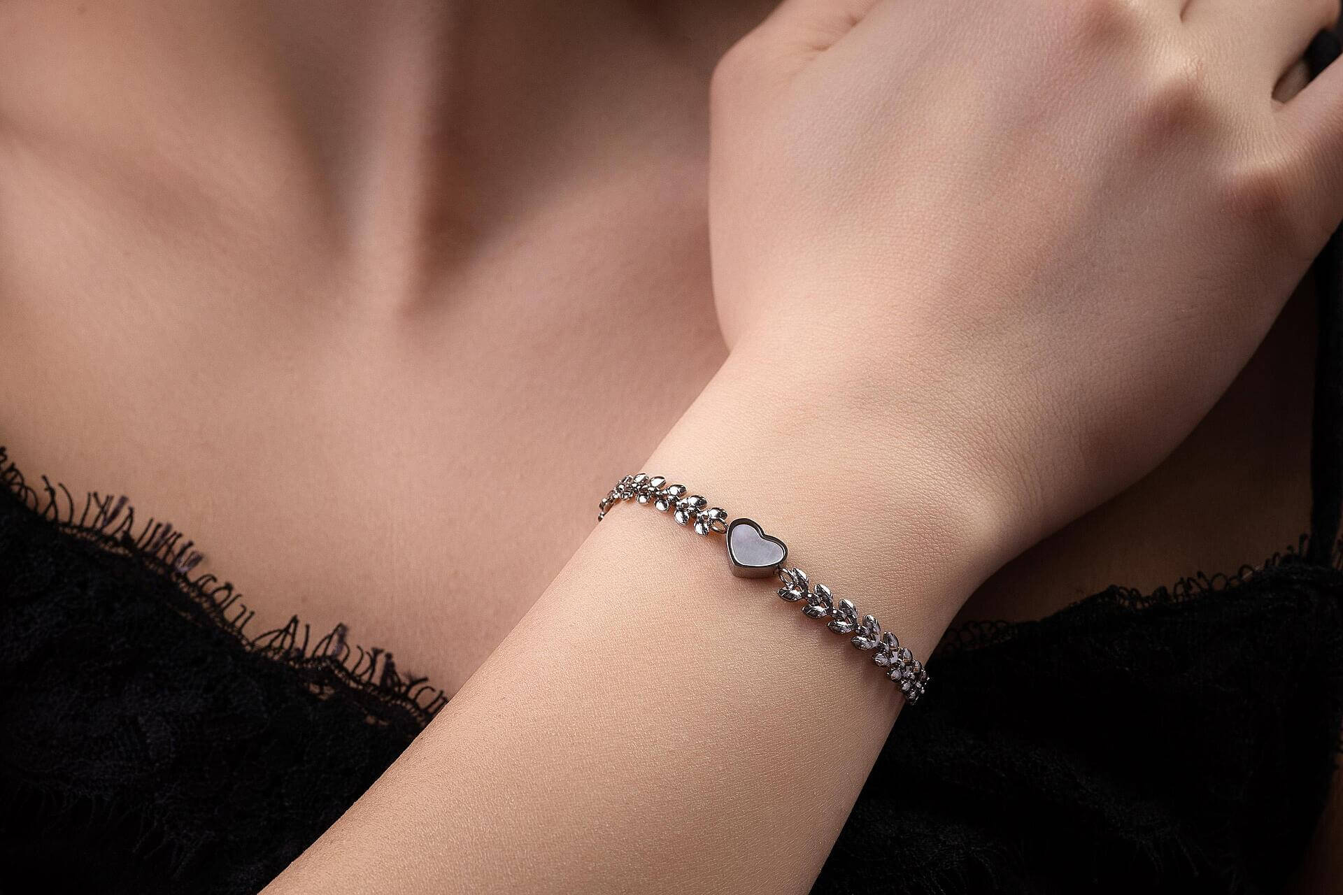 Ένα κόσμημα που αποπνέει ρομαντισμό και διαχρονική κομψότητα. Κατασκευασμένο από υψηλής ποιότητας χειρουργικό ατσάλι, αυτό το βραχιόλι με καρδιά από φίλντισι είναι η ιδανική επιλογή για κάθε γυναίκα που λατρεύει τα εκλεπτυσμένα αξεσουάρ.
