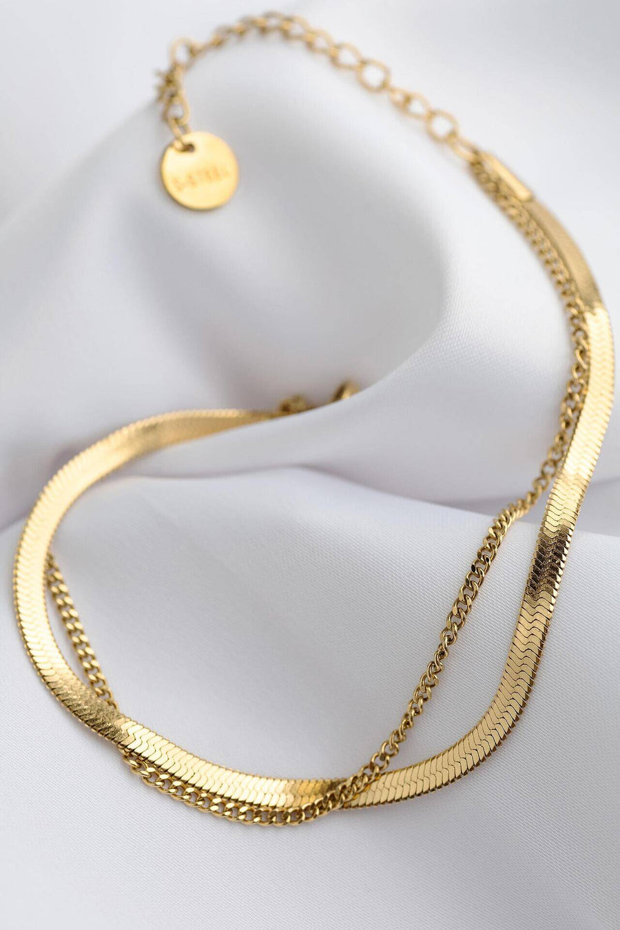 Διπλό εύκαμπτο βραχιόλι σε χρυσό χρώμα και πλέξη φιδιού. Απλό και κατάλληλο για κάθε περίσταση.