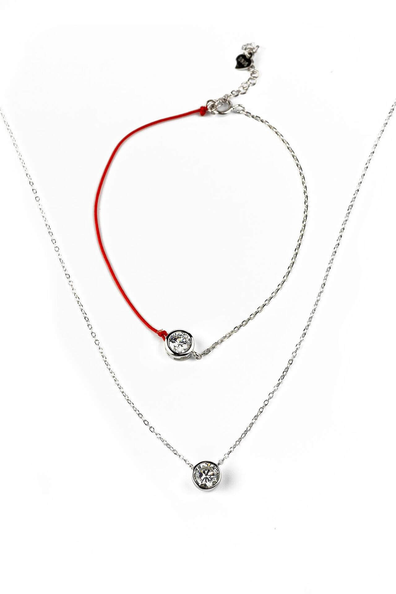 Σετ S925: Κόκκινο κορδόνι – κολιέ + μαλακό βραχιόλι